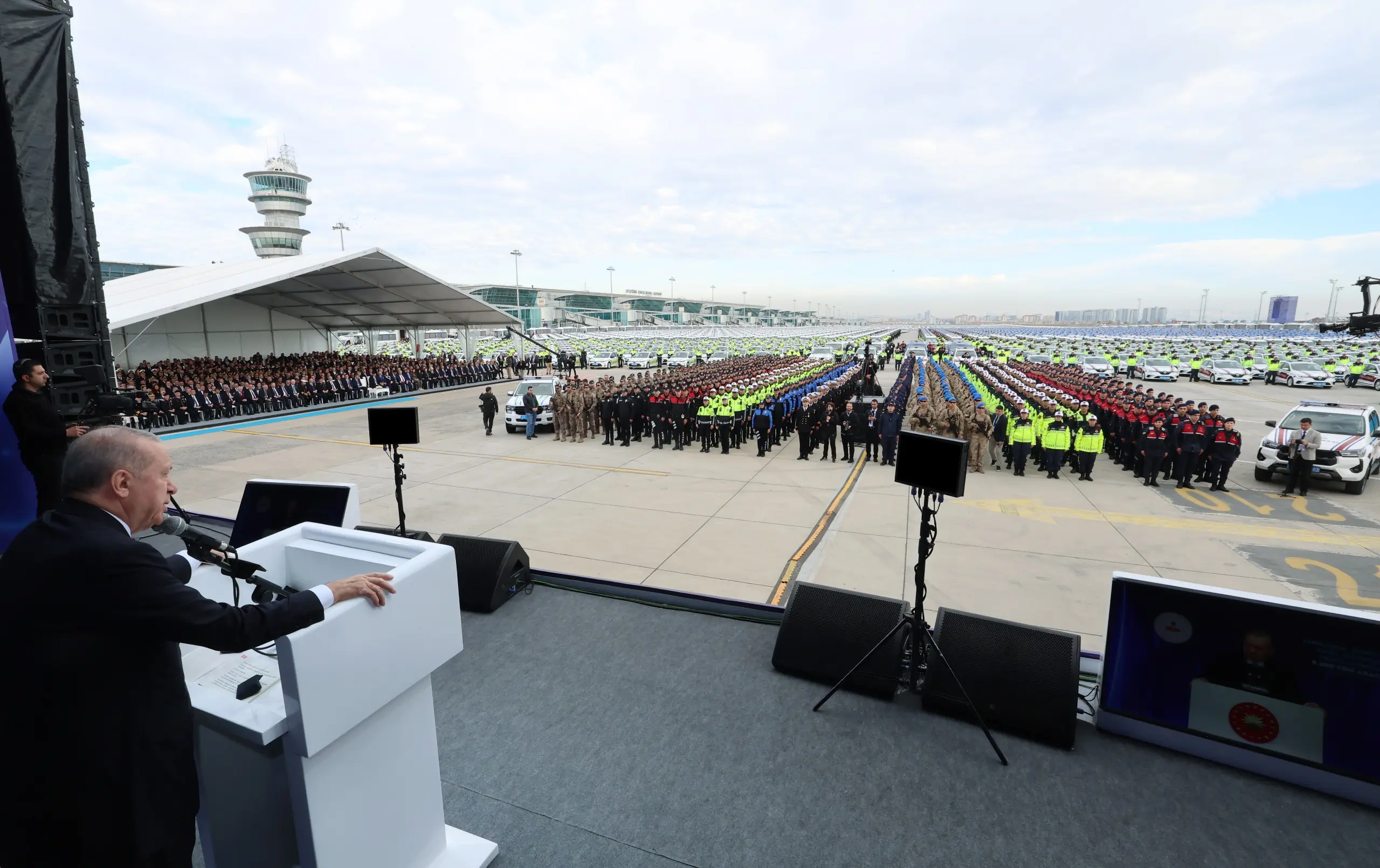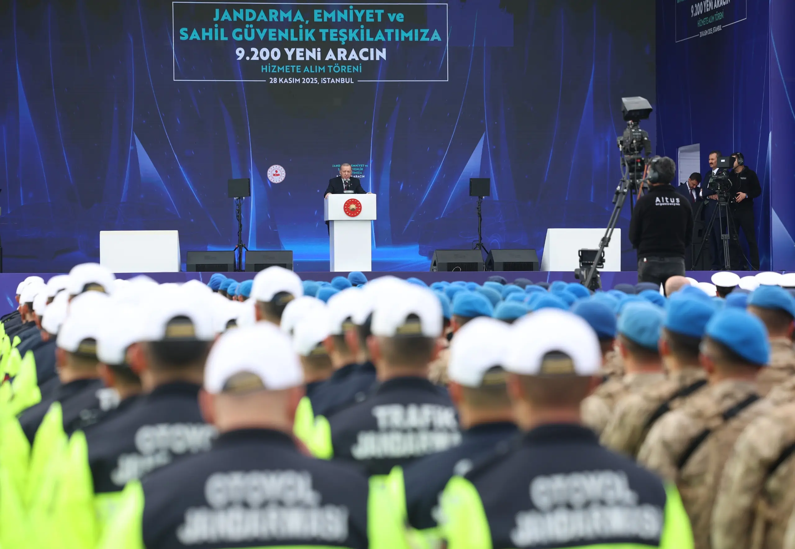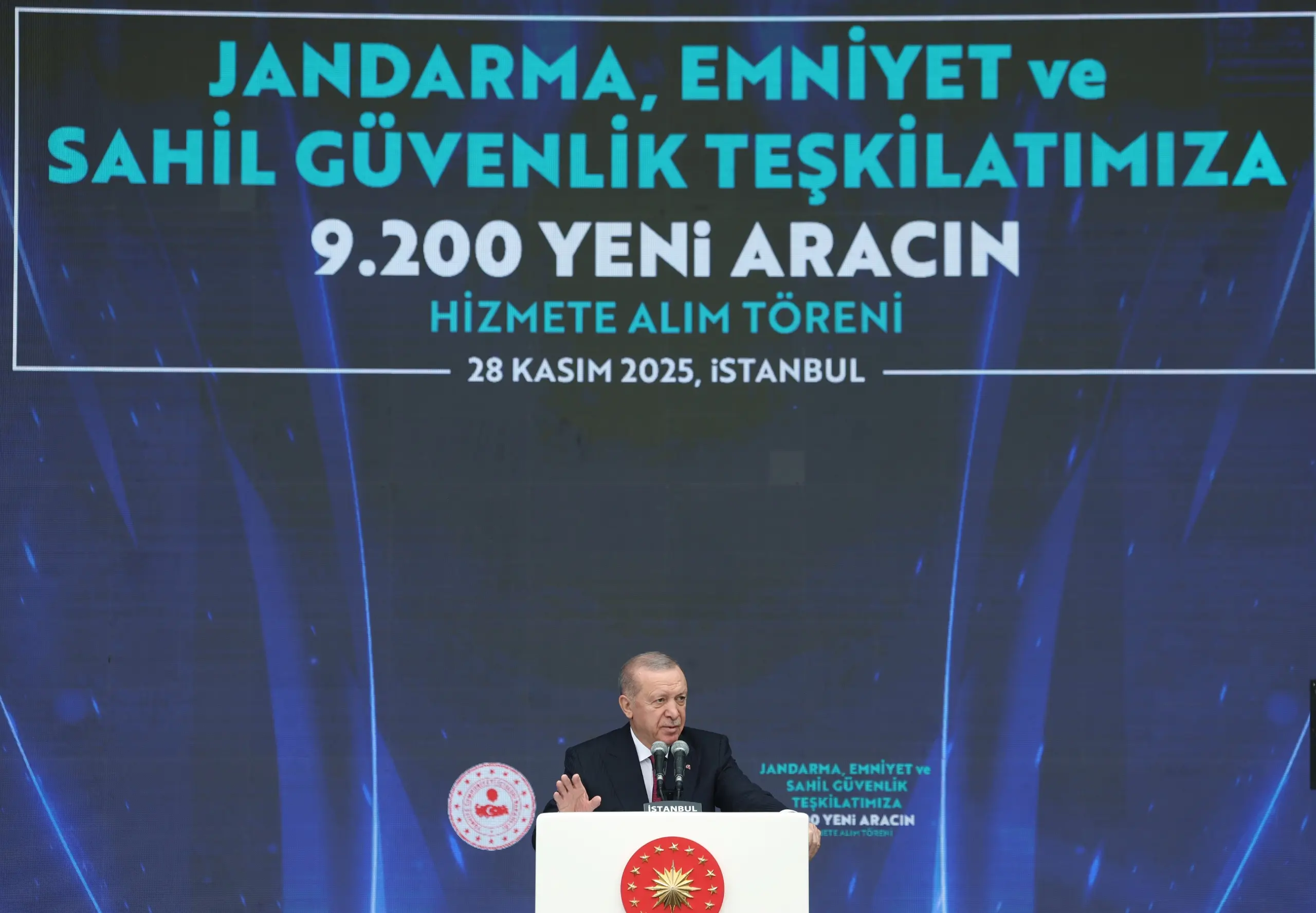 Cumhurbaşkanımız Recep Tayyip Erdoğan, Atatürk Havalimanı’nda gerçekleştirilen, Jandarma, Emniyet ve Sahil Güvenlik teşkilatları için 9 bin 200 yeni aracın hizmete alım törenine katılarak bir konuşma yaptı.