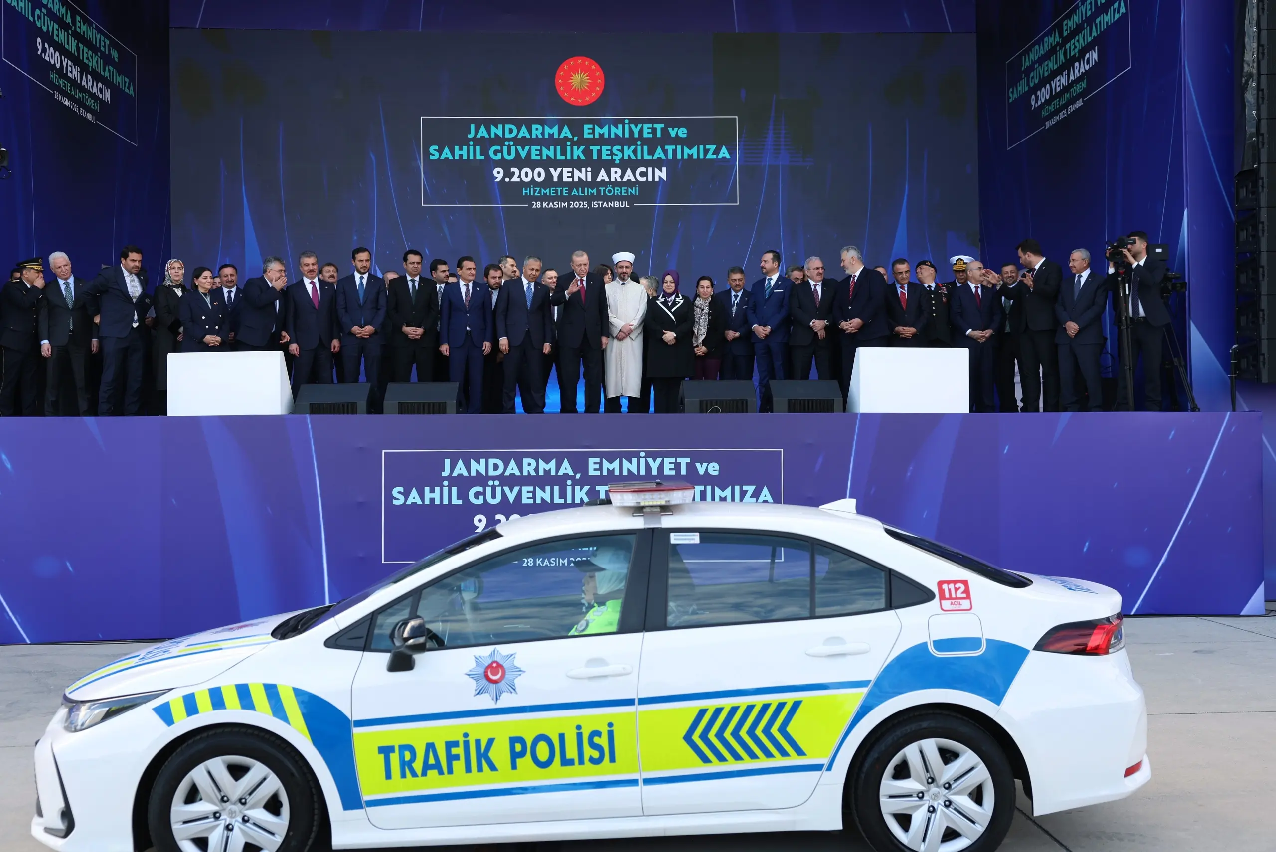 Cumhurbaşkanımız Erdoğan, böylece hem görev araçlarının niteliğini hem de vatandaşlara sunulan hizmetlerin etkinliğini arttırdıklarını belirterek, "Geçen sene yine burada yaptığımız törenle jandarma ve emniyet teşkilatlarımıza 7 bin 204 yeni aracı kazandırmıştık. Bugün de 9 bin 200 aracı daha resmen sizlerin hizmetine veriyoruz. Bu araçlardan 7 bin 80 tanesi emniyetimiz, 2 bin 70 tanesi jandarmamız, 50 tanesi ise sahil güvenliğimiz tarafından kullanılacak. Hayırlı uğurlu olsun diyorum" diye konuştu.