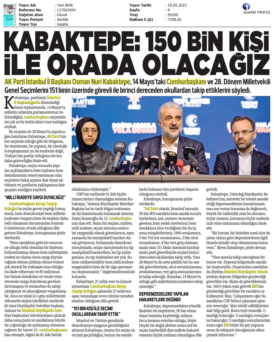 İl Başkanımızdan Seçim Değerlendirmesi- Yeni Şafak